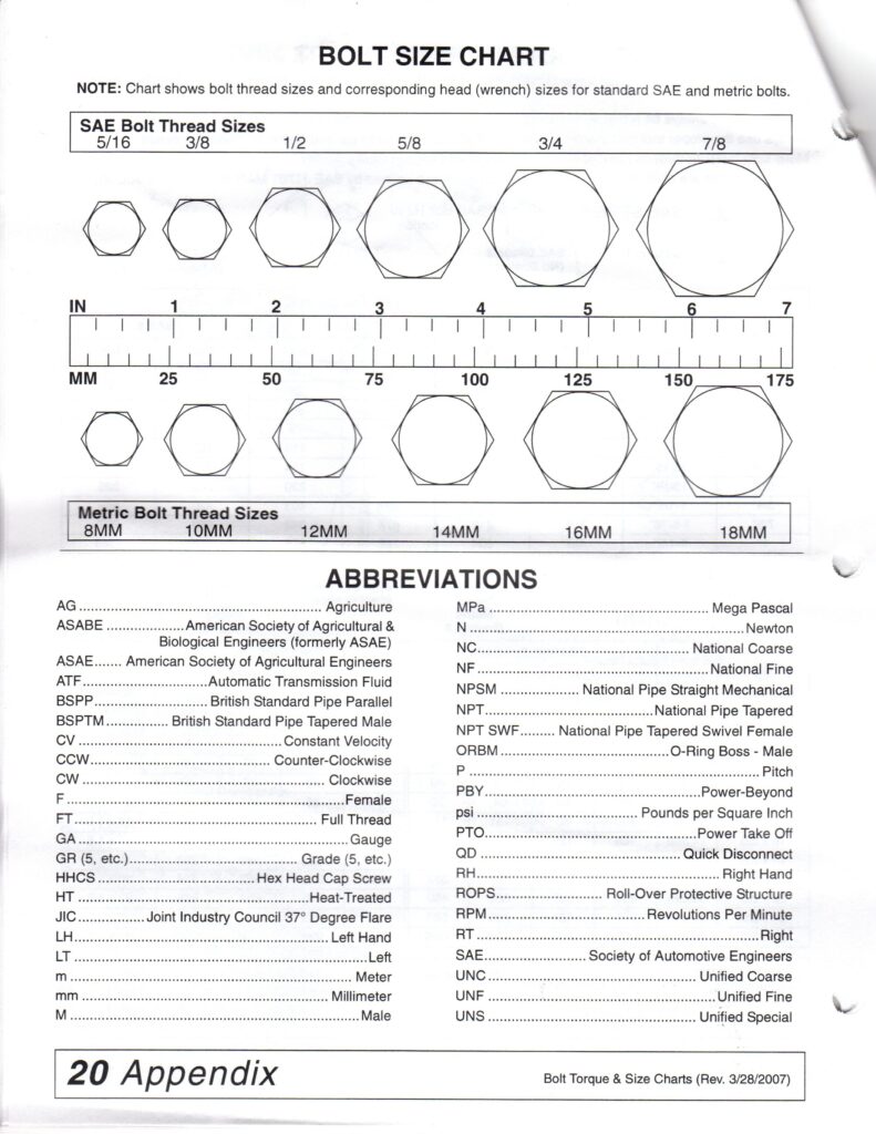 Printable Bolt Size Chart